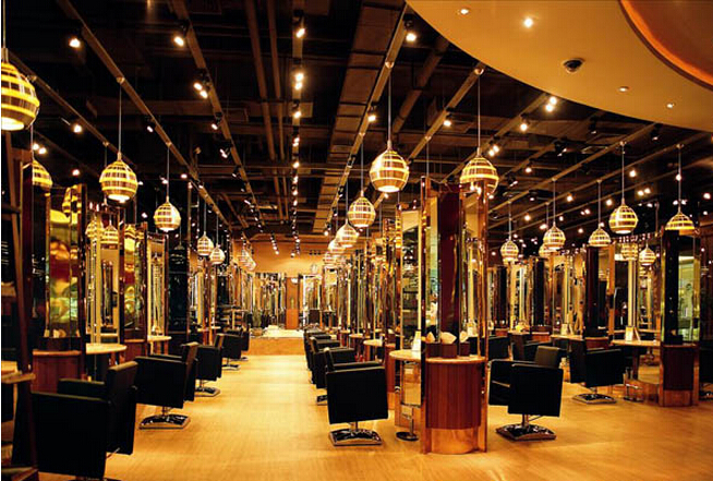 發廊或美容院的燈飾不僅僅是為了照明,經營者可以在燈飾上動腦筋,烘托出一份溫馨的環境來。有發廊或美容院內部的燈具均使用酒吧經常采用的倒掛式酒瓶吊燈,共光線柔和,幽雅的燈飾效果恰到好處地烘托了美容美發環境。