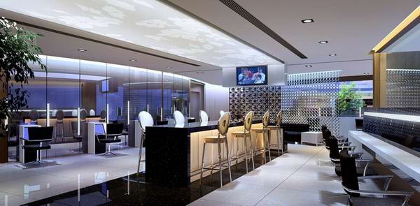 美發店的前臺區應該體現出美發店面的整體設計風格,應該屬于是店面的一個亮點,整體設計可以用玻璃不銹鋼及大理石來體現出其獨有的面貌,前臺背景體現出公司品牌效應。