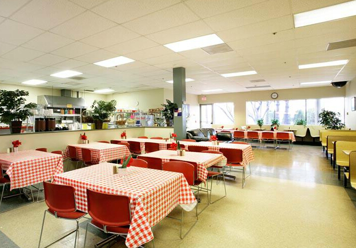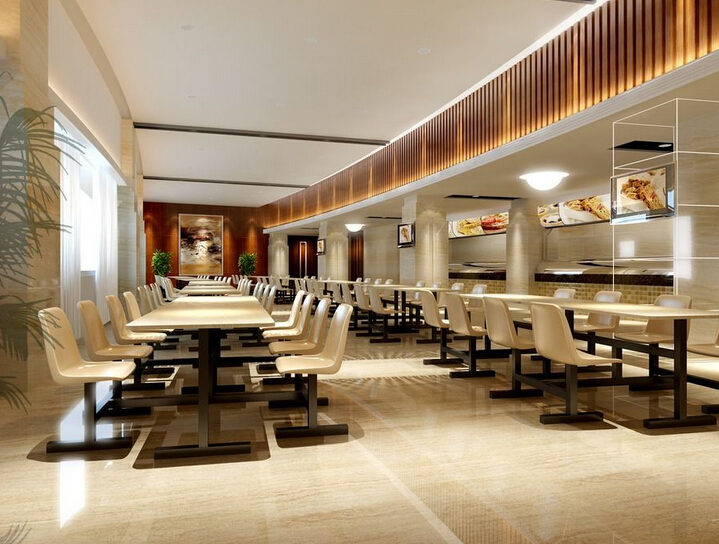 餐桌色彩的搭配要和諧,燈光照明最好以暖色調為主。背景音樂以輕柔舒緩為主調,買餐、就餐路線要合理規劃。