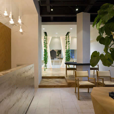 Dessence的日本設計師Kazutoyo Yamamoto打造了一家掛著葡萄的美容院,位于日本埼玉。 命名為Garden By Be Area,該項目旨在利用懸浮葡萄空間與為戶外分離。上層樹葉覆蓋洗發領域,其裝飾是鑲木地板和木制柜。玻璃等候室配有兩棵大樹和木制家具。美容院外觀是反射面的表面。Yamamoto說,他試圖創造一個空間“表達現代自然的和諧”。