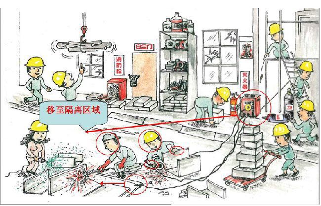 2、電焊機應放在動火隔離區域內; 3、電焊操作左手須持專門的護目裝備,配備專用焊工帽; 4、電焊槍回路應夾在工件上; 5、打磨操作應配備專門的護目裝備; 6、打磨操作應佩戴專用手套; 7、動火作業須配備滅火器。