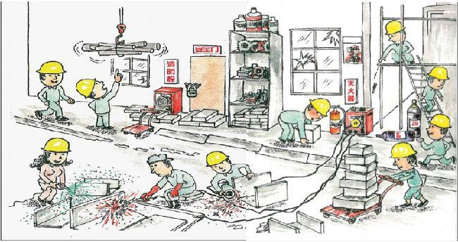9、物品應存放整齊有序 ,存放物品時應遵循“低重輕高”的原則 ,柜高應便于拿放物品; 10、通道蓋板未放平; 11、應用合理的方式和姿勢搬運重物 ; 12、玻璃破損應及時修復; 13、滅火器位置被電焊機占用。