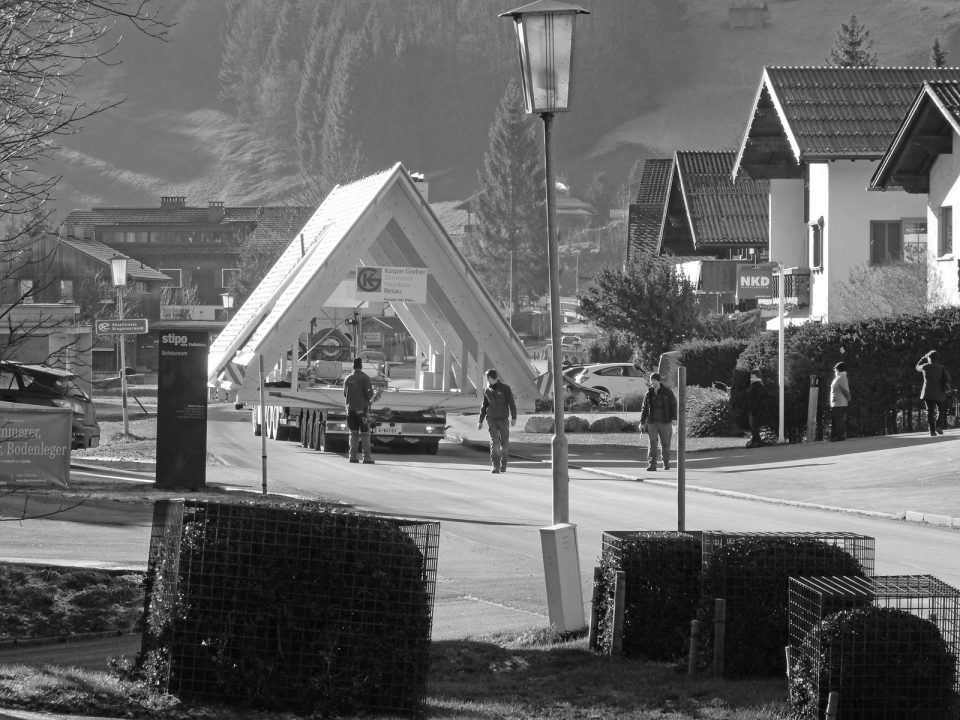 建筑的支撐結構也體現了相同的概念,預制的木結構框架使用了實木材料,連接處完全沒有使用任何金屬固定。外墻和建筑物的梁柱體系也由實木材料組成。為了盡量避免中斷商店的營業過程,整個結構在場地附近的木材建筑公司預先組裝完成,再于現場安裝。高度預制化的設計使得建筑可以在最快的時間內有著最高的完成質量。由于場地離木材建筑公司非常近,所以整個屋頂都是組裝好以后,用起重機安裝在基座上的。